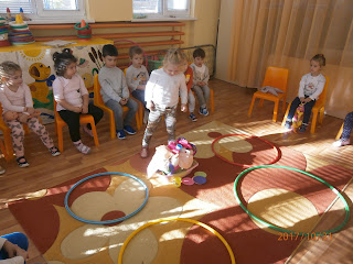 Назоваваме предметите и ги разпределяме в куклената къща на Катя.Почистваме.Куклата Катя очаква гости.Червеният обръч е кухня.